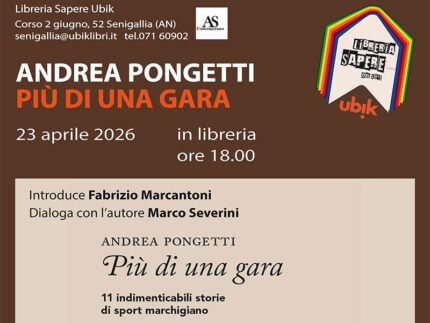 Cultura e Spettacoli"Più di una gara", prima presentazione pubblica per il nuovo libro di Andrea PongettiGiovedì 23 aprile alle ore 18 alla Libreria Sapere Ubik di Senigallia, in Corso 2 Giugno. Introduce Fabrizio Marcantoni, dialoga con l’autore Marco Severini