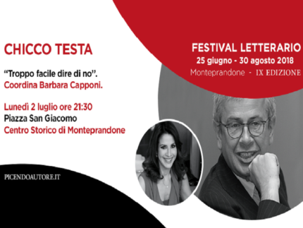 Chicco Testa è l’ospite del secondo appuntamento di Piceno d’Autore 2018 in programma lunedì 2 luglio, alle 21:30, in piazza San Giacomo nel Centro Storico di Monteprandone dove presenterà il libro dal titolo “Troppo facile dire di no” (edizioni Marsilio).
