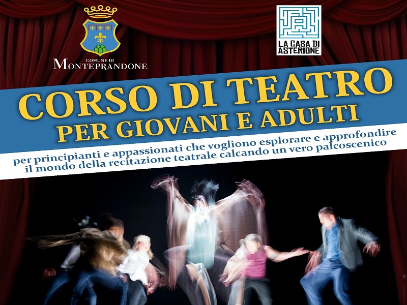 Il Comune di Monteprandone, in collaborazione con l’associazione di promozione sociale “La Casa di Asterione”, organizza un corso di teatro gratuito riservato a giovani e adulti.